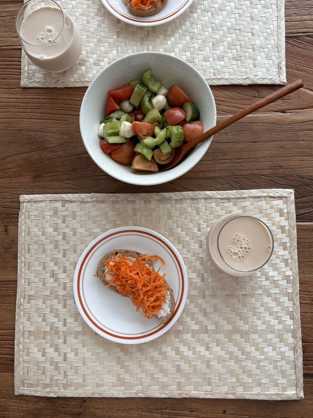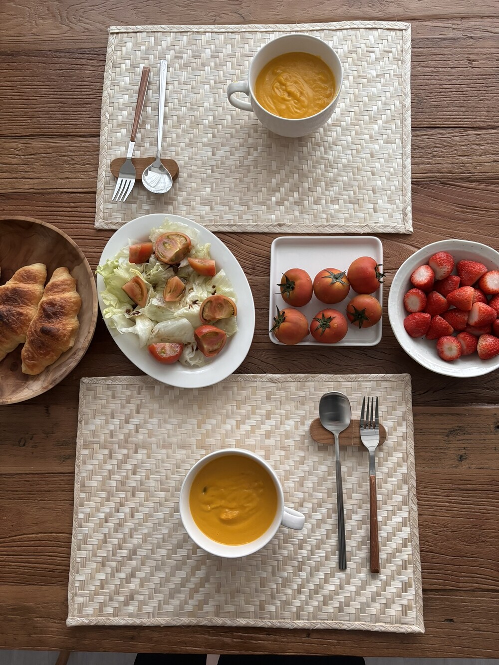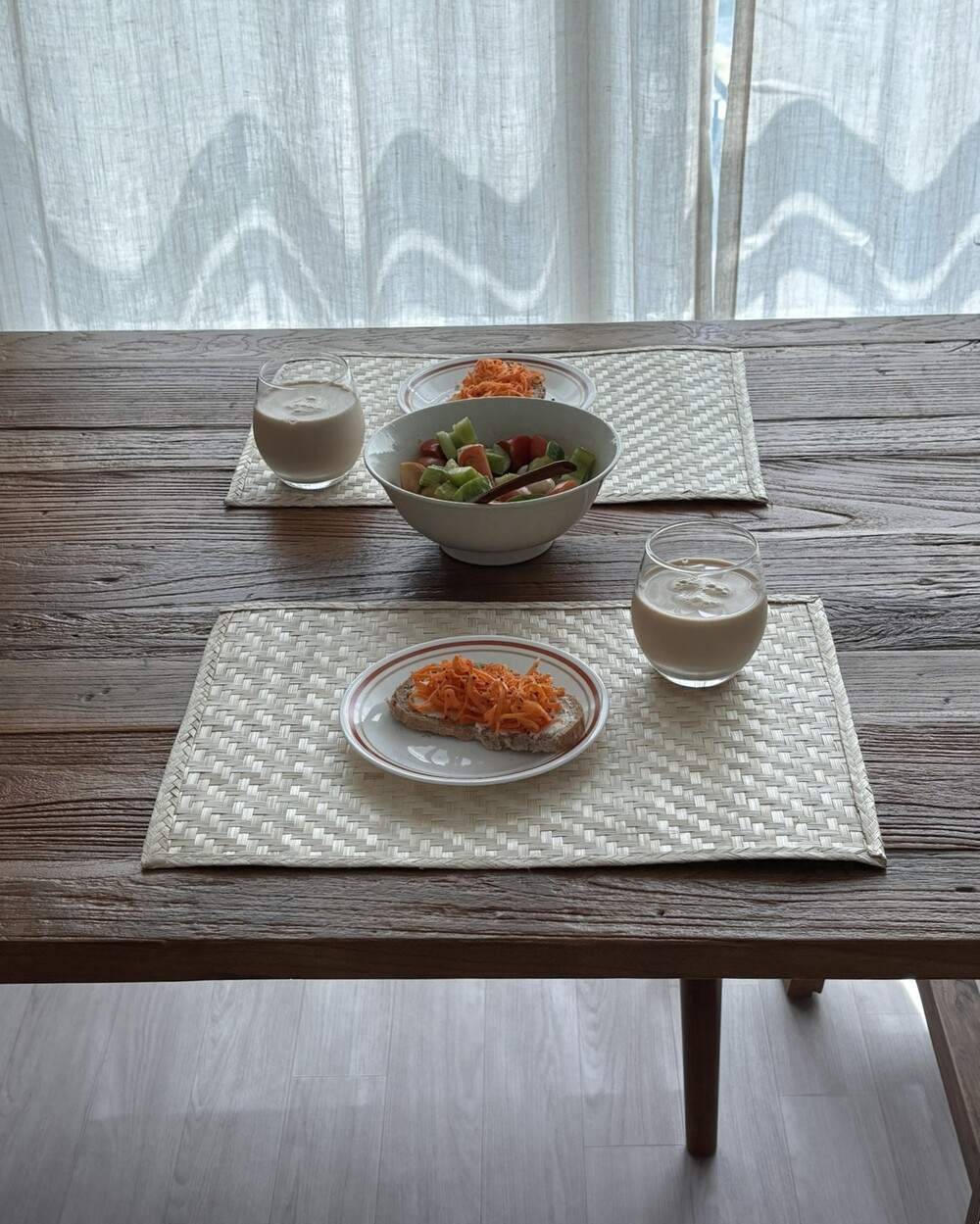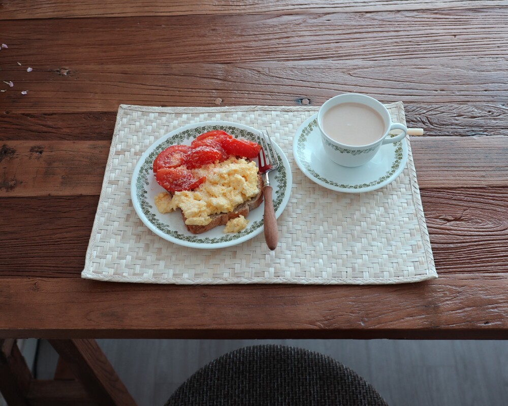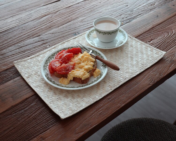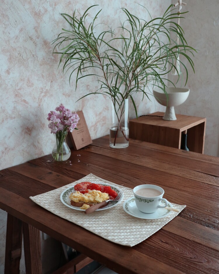연한 베이지, 아이보리 컬러의 밤부 테이블 매트를