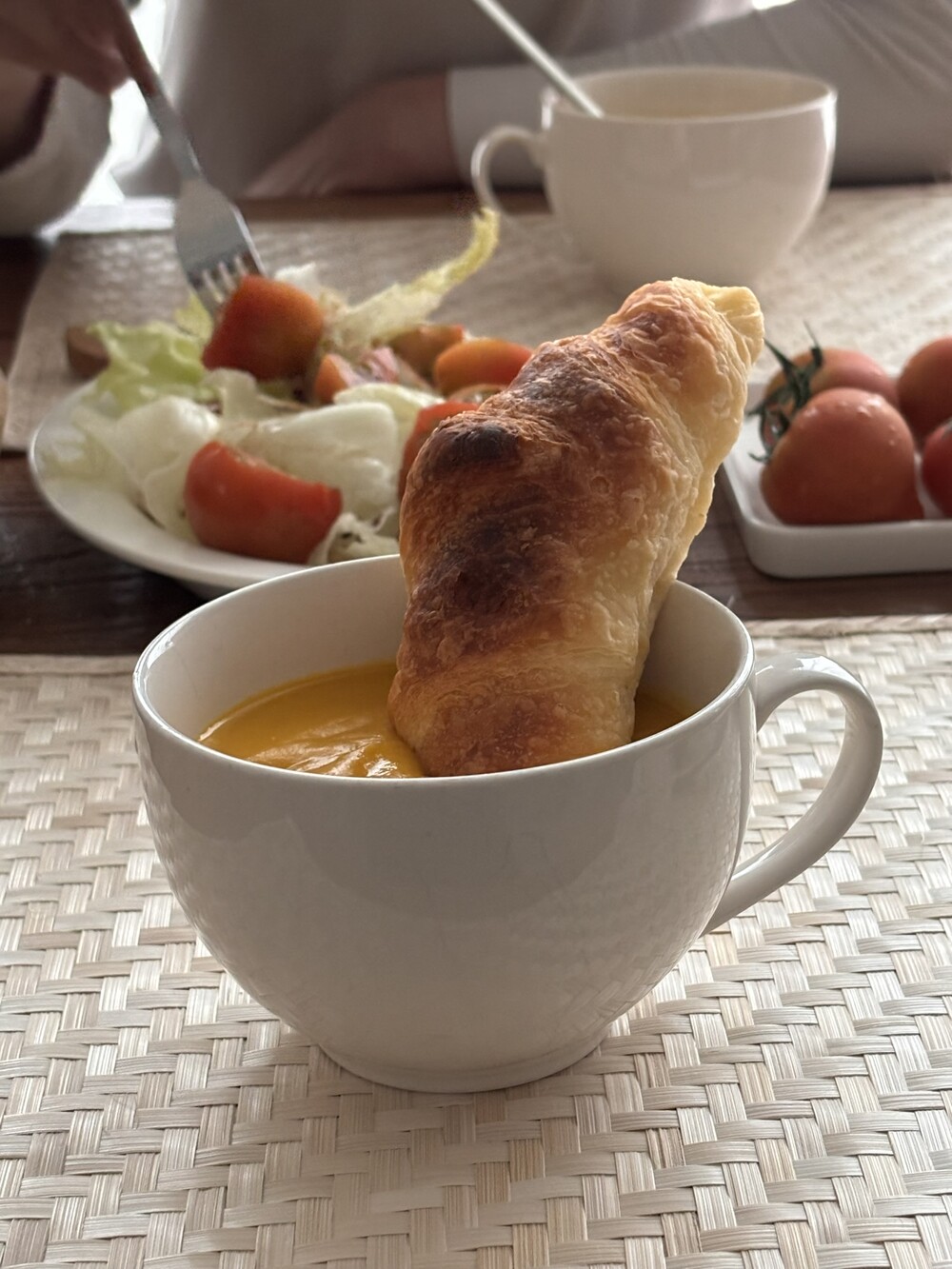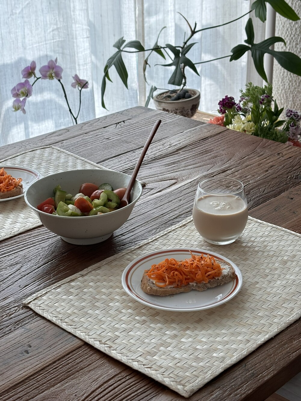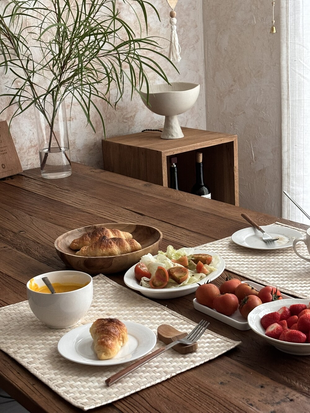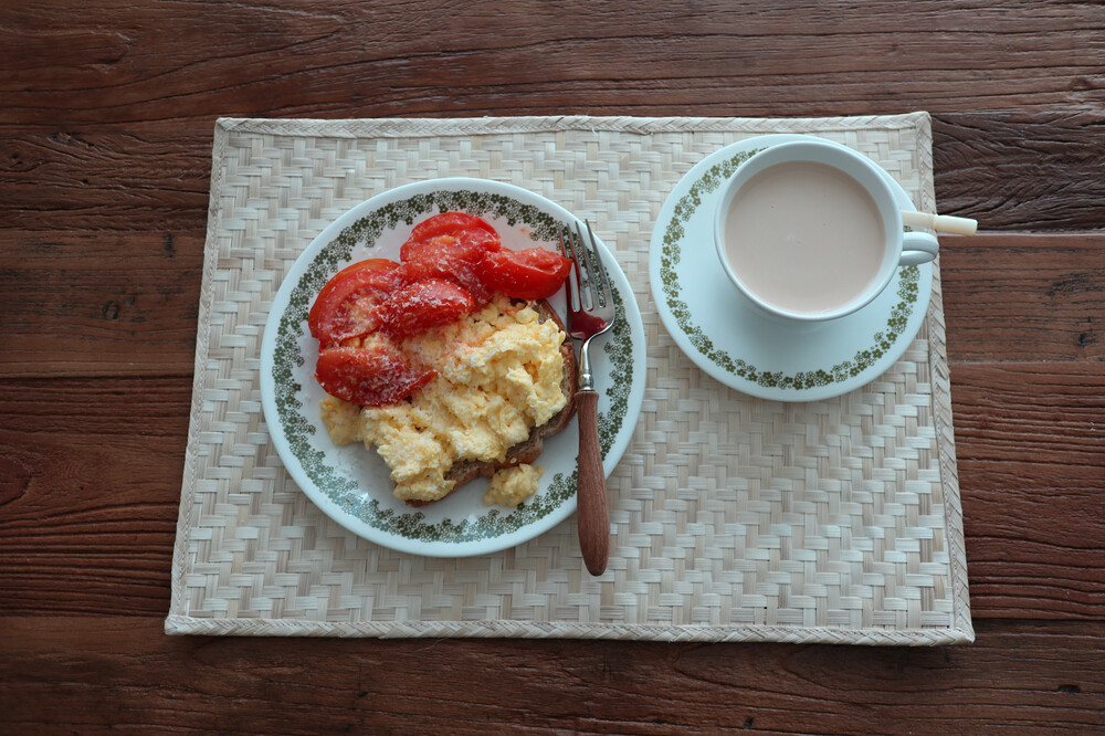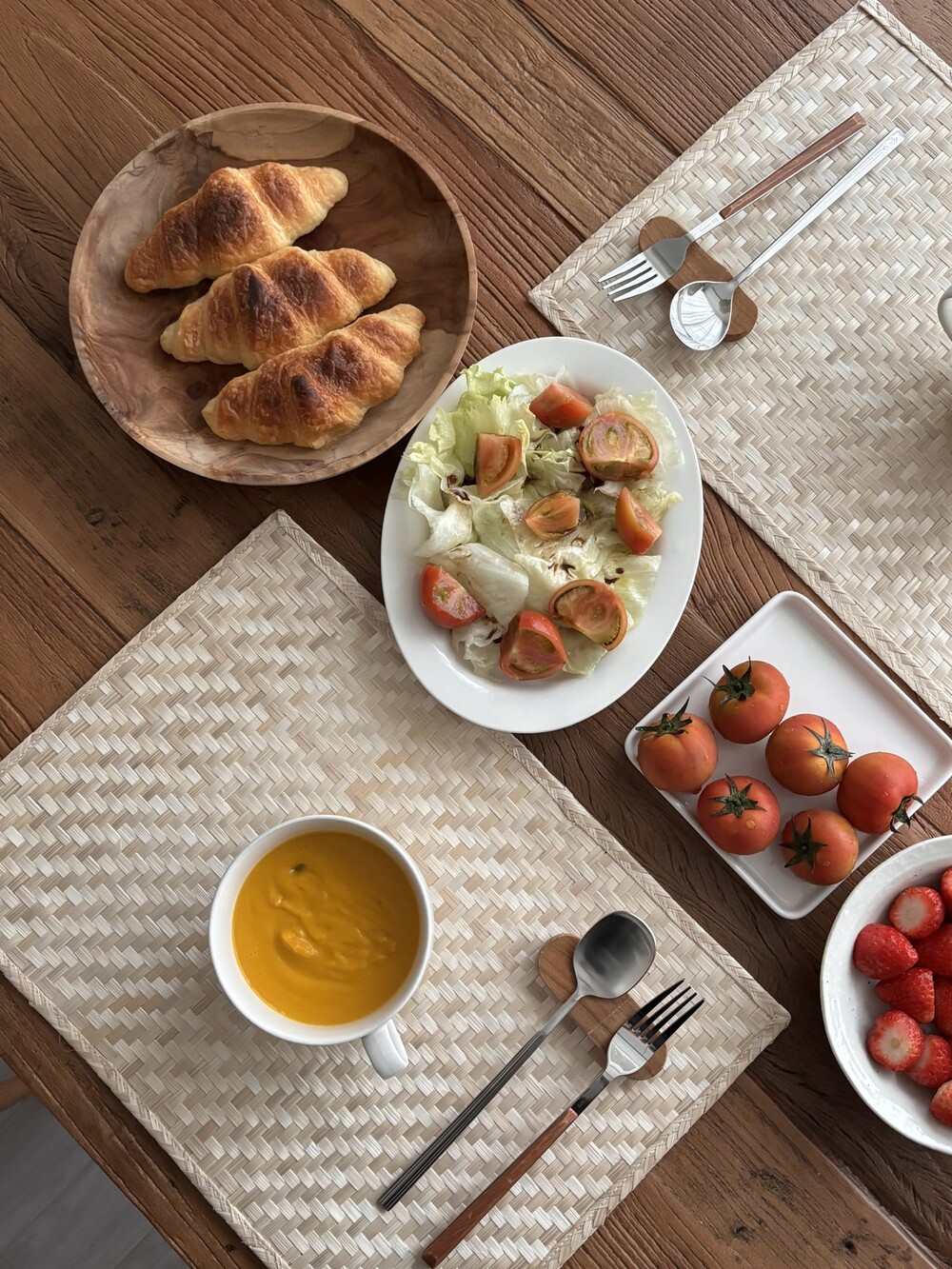 연한 베이지, 아이보리 컬러의 밤부 테이블 매트를