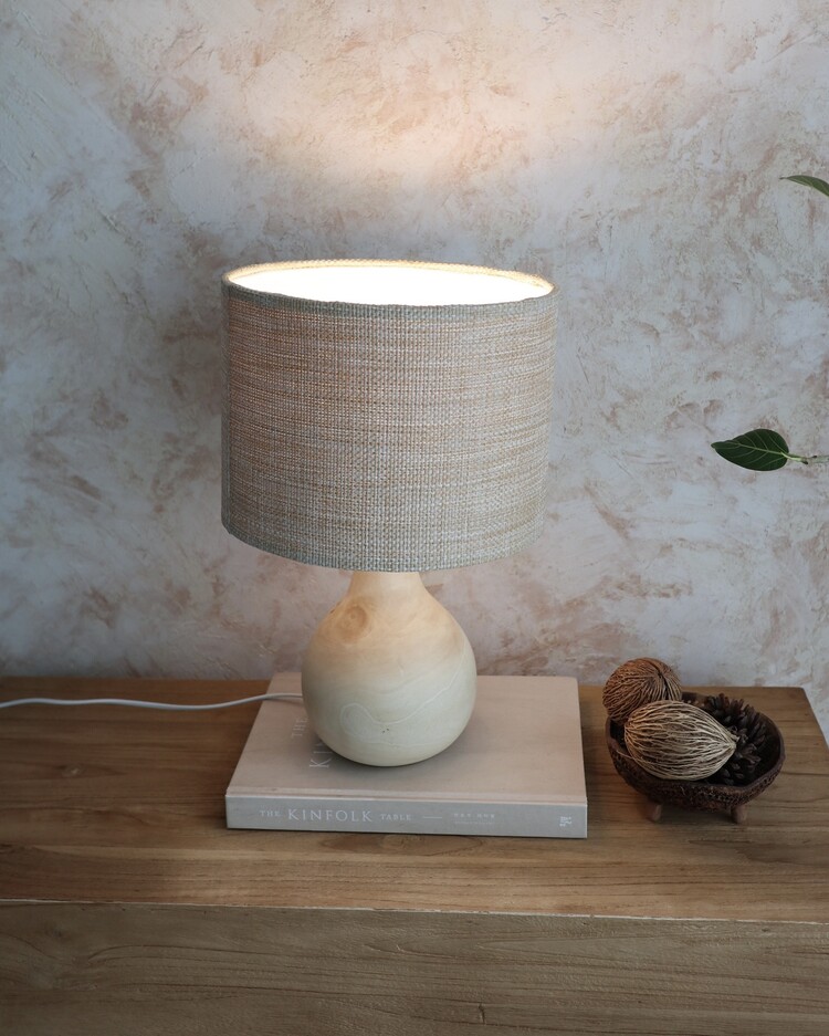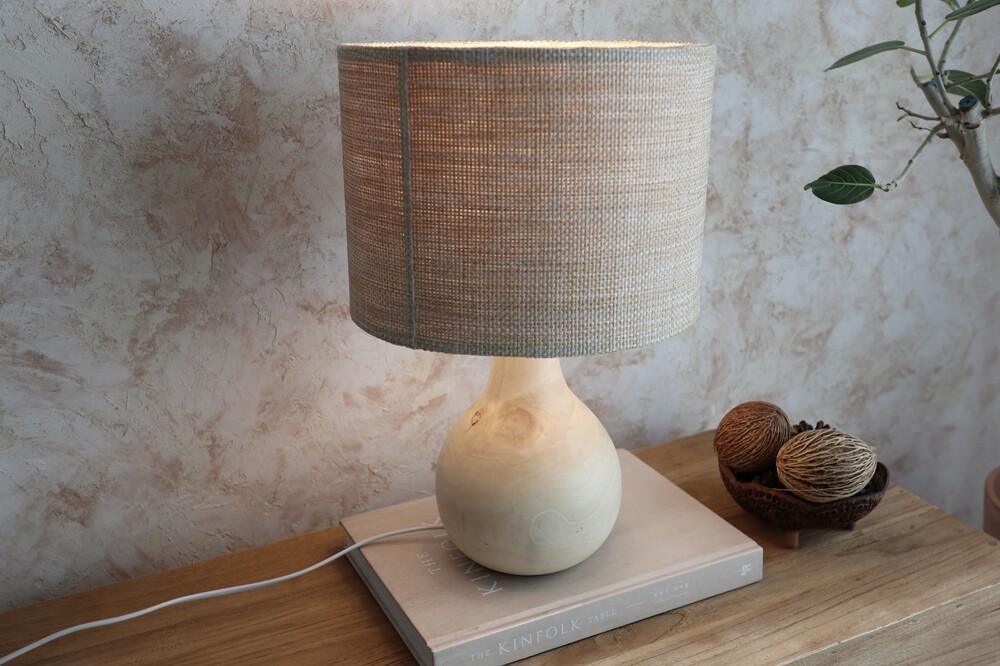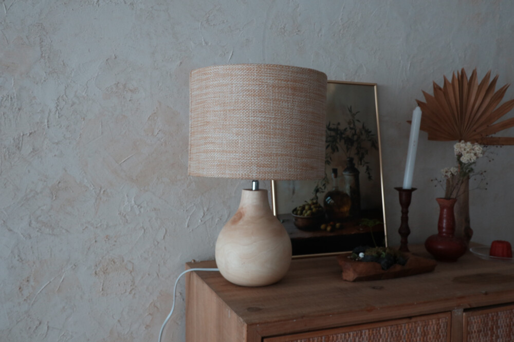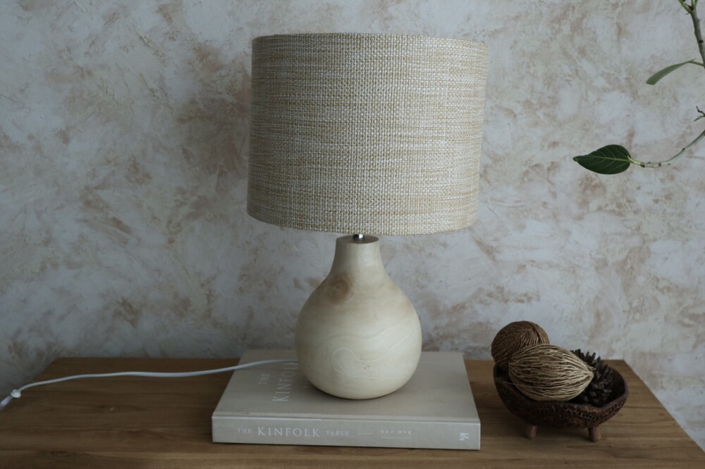 니트 짜임의 쉐이드를 더해 차분하고 단정한 무드의 우드 램프입니다.