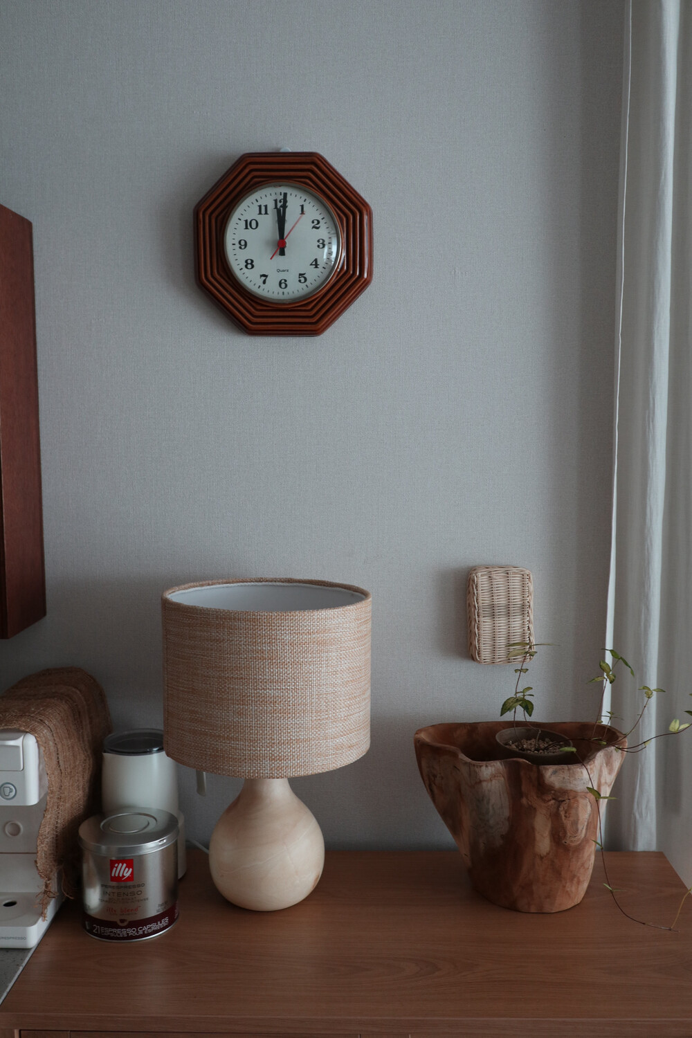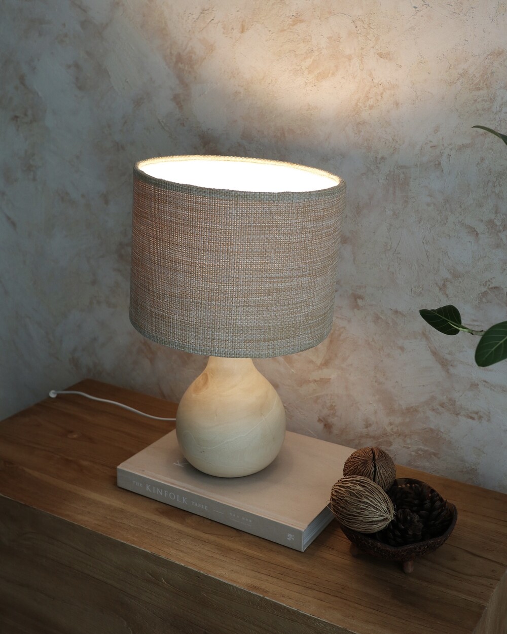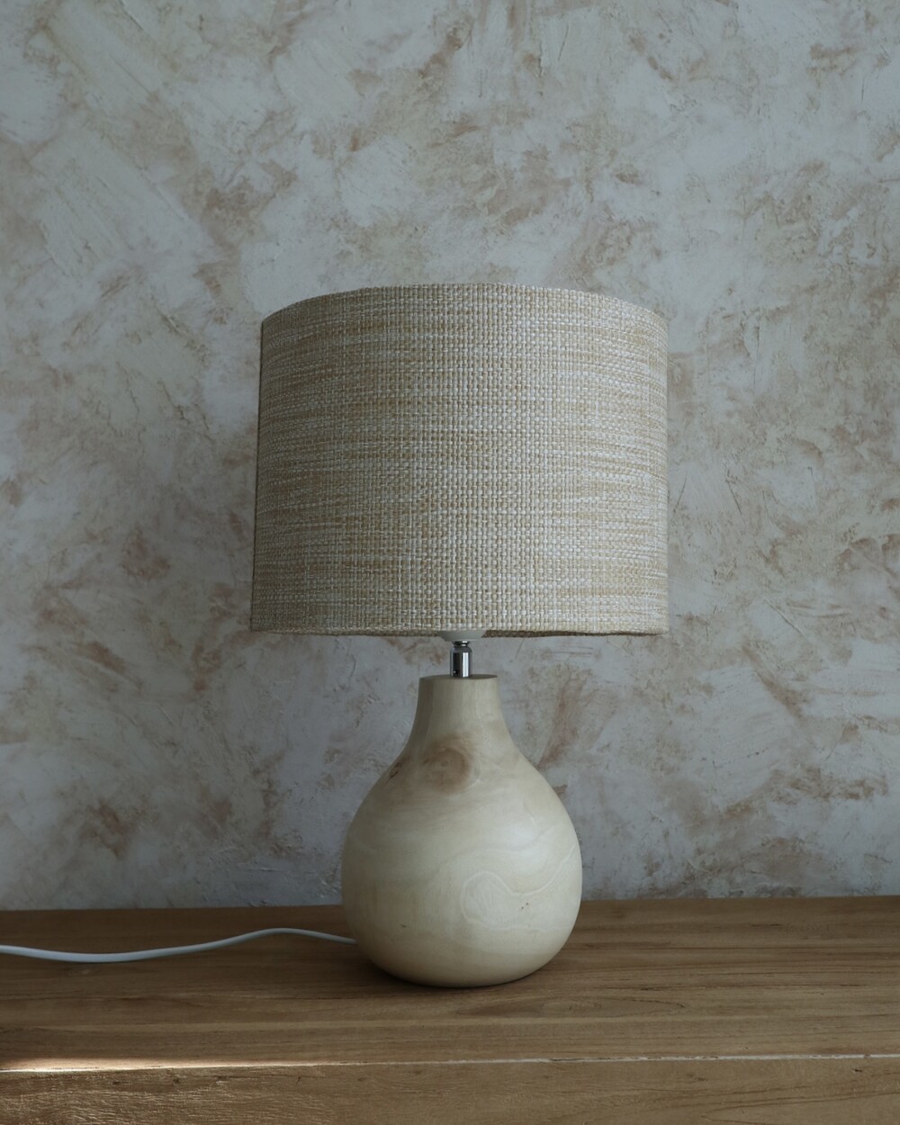 니트 짜임의 쉐이드를 더해 차분하고 단정한 무드의 우드 램프입니다.