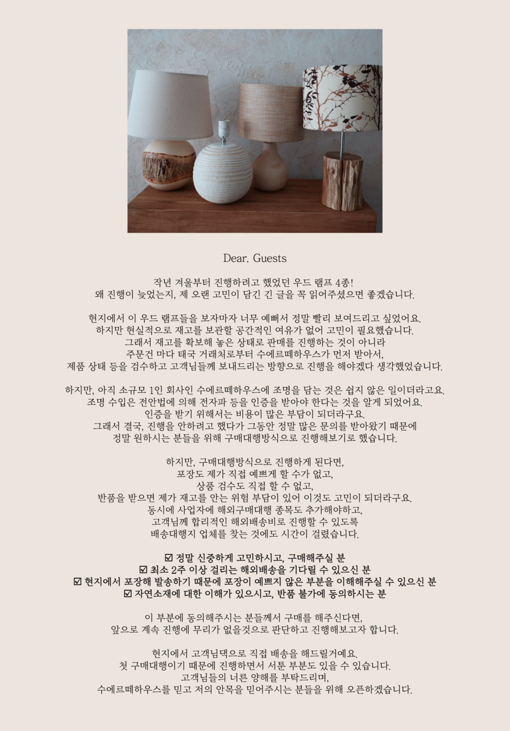 수에르떼하우스의 첫 구매대행 진행이라