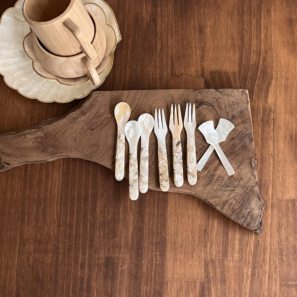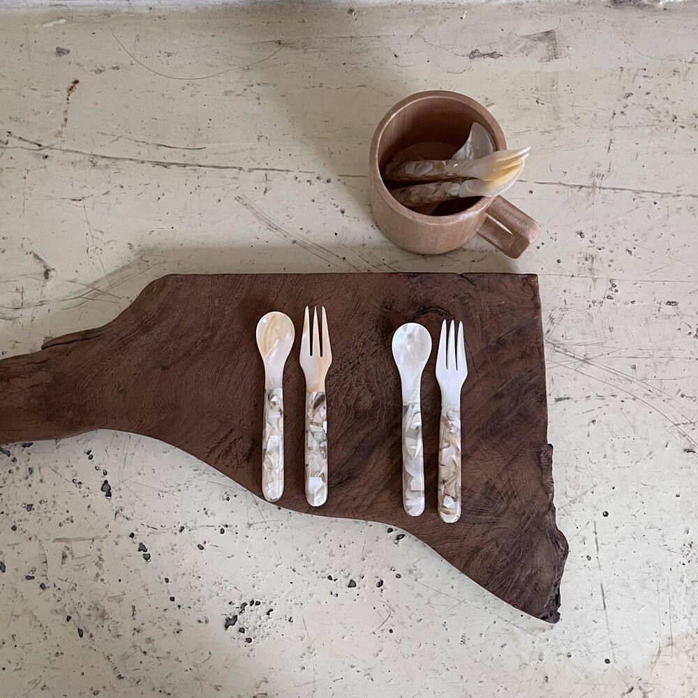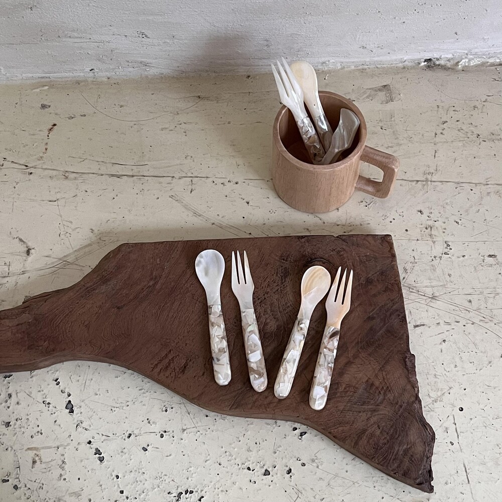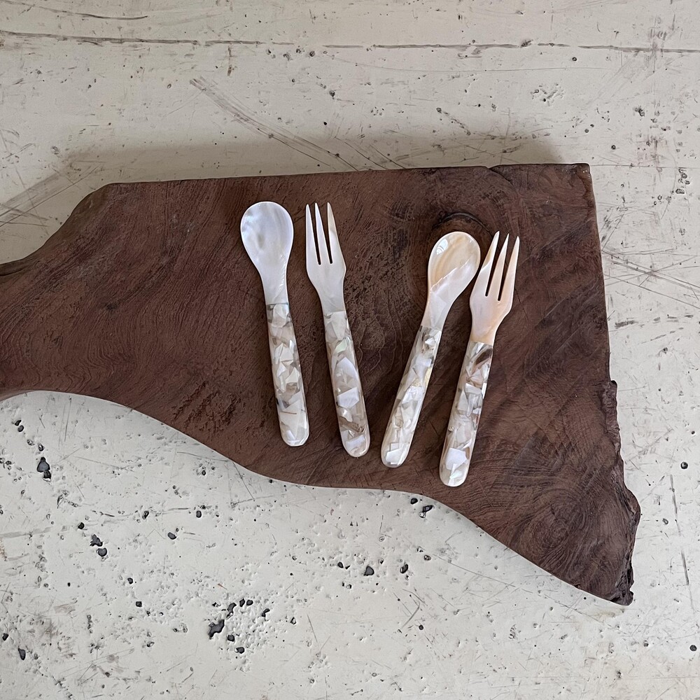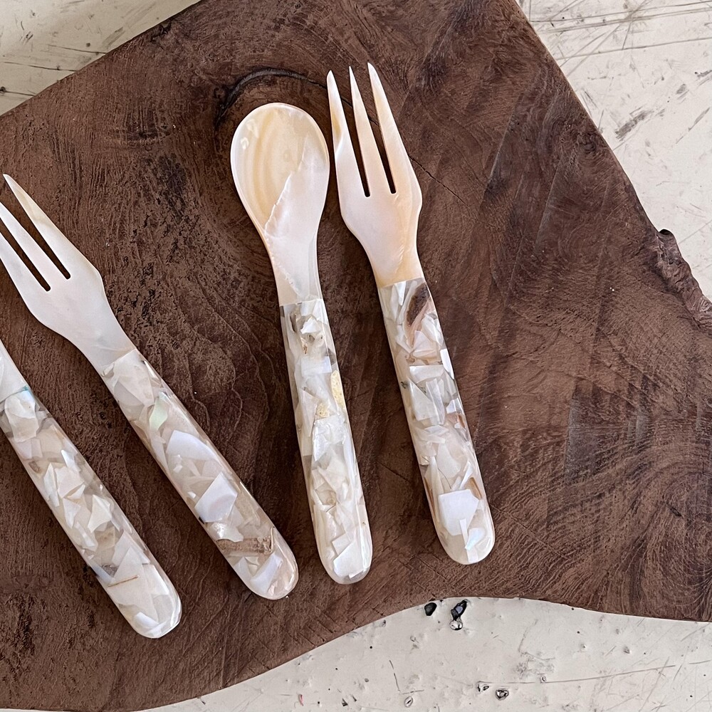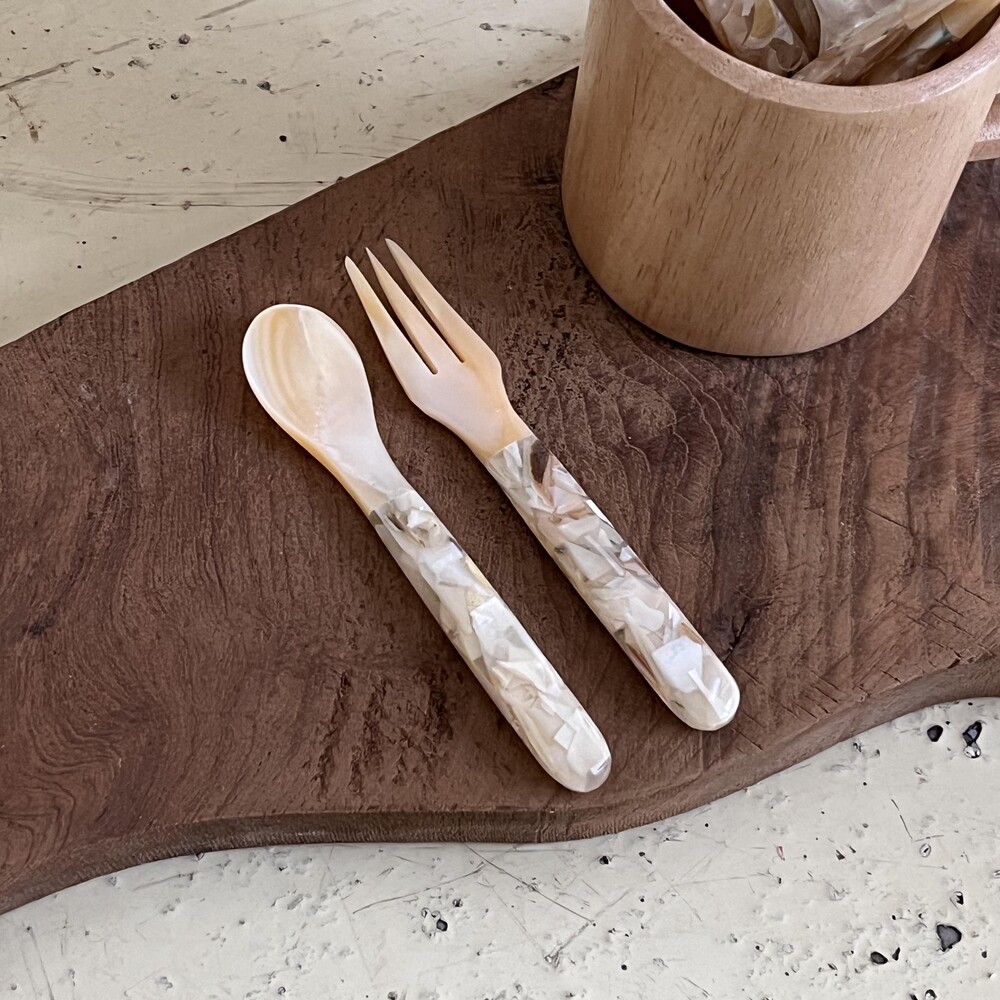 Beige Terrazzo Mother of Pearl Spoon & Fork