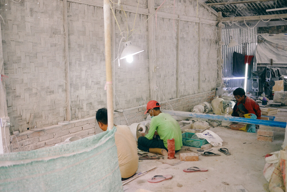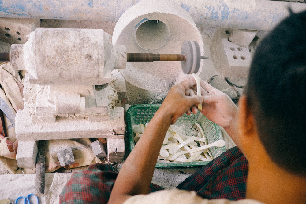 천연 자개를 사용하여 광을 내는 연마 작업 외에는