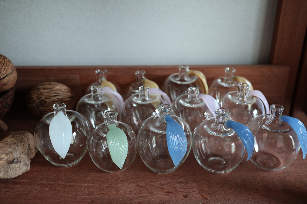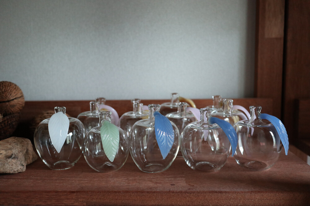 입으로 불어서 만든 유리 사과에