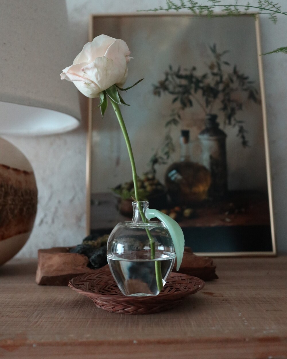 밀크 글라스로 만든 잎을 붙여준 애플 베이스입니다.