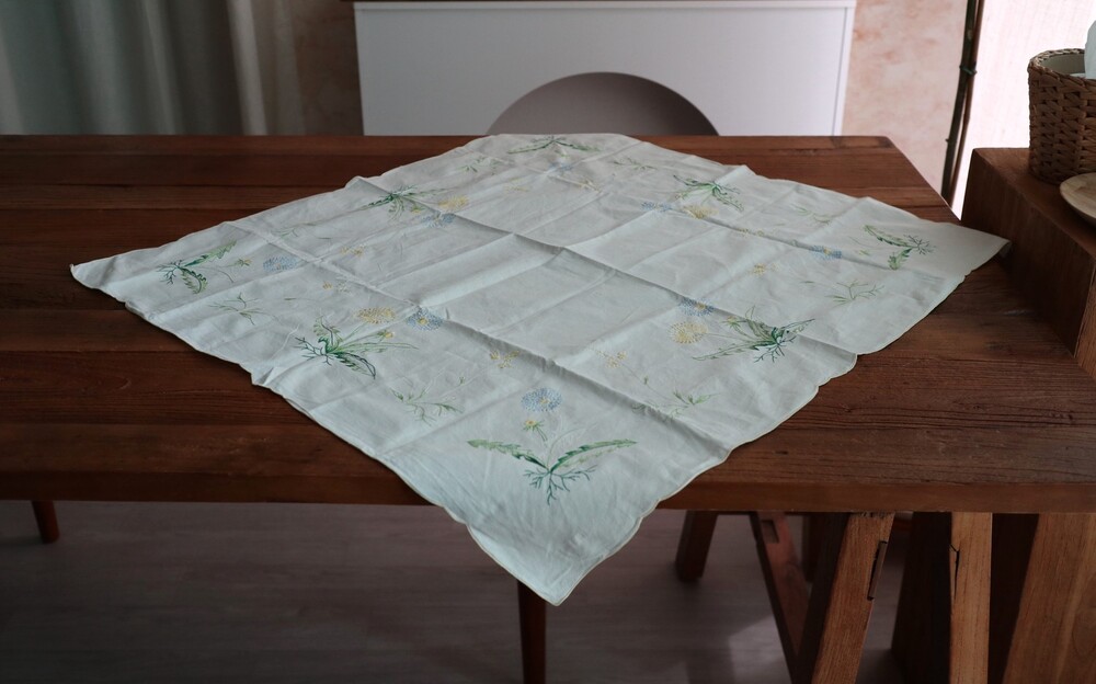 은은한 꽃 자수가 너무 예쁜 테이블보에요.