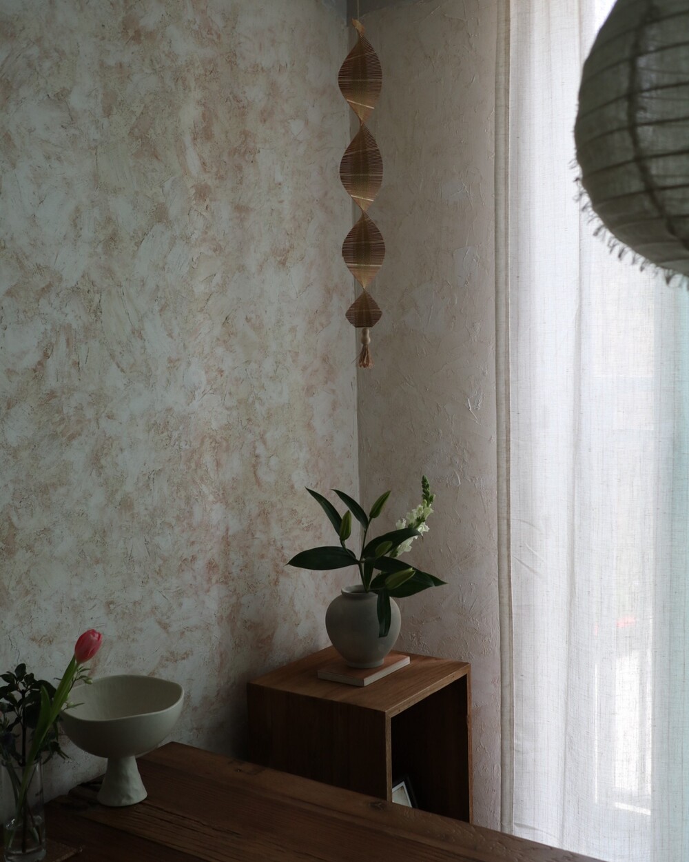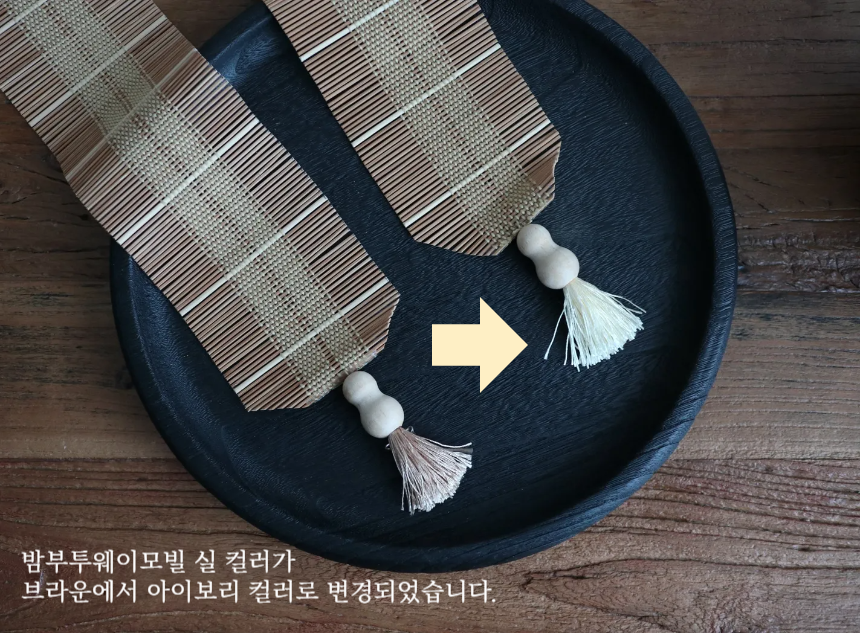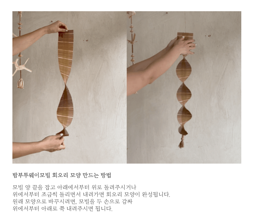 재입고 된 밤부투웨이모빌 하단의 실 컬러가 브라운에서 아이보리 컬러로 변경되었습니다.