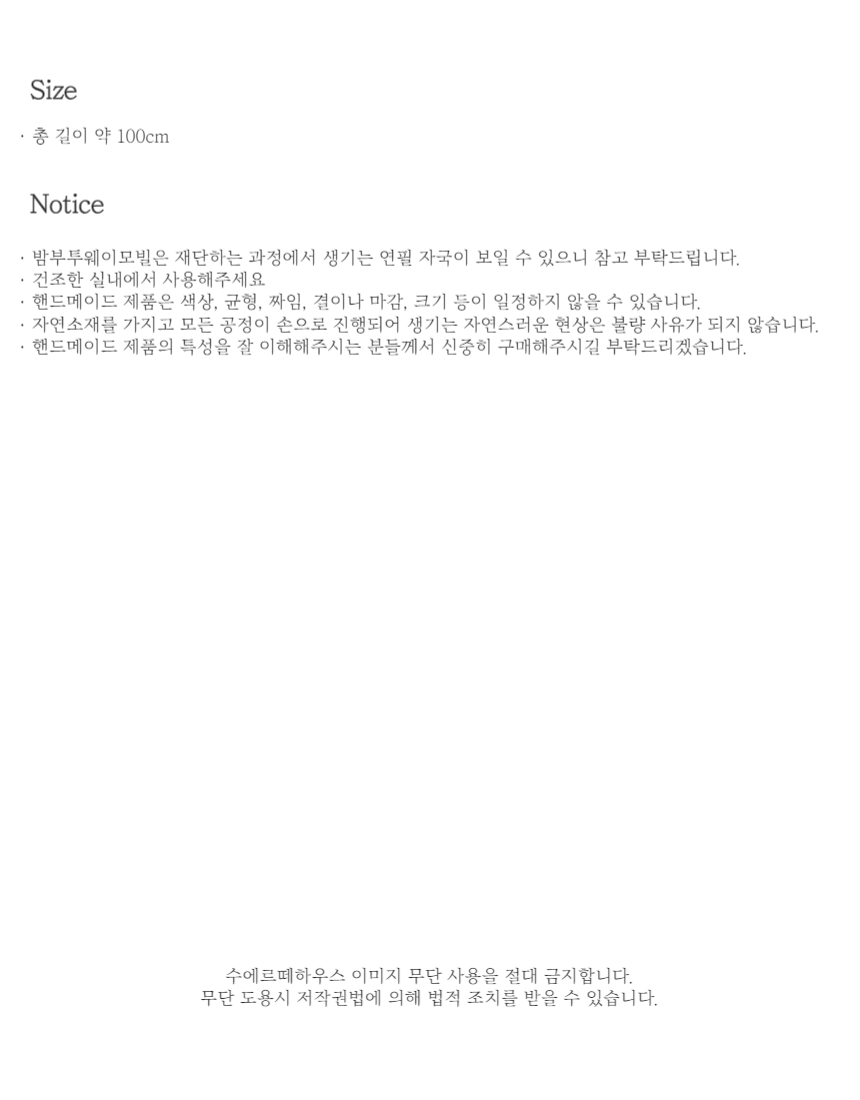 - 자연소재와 핸드메이드 특성에 따른 반품은 불가하오니 신중한 고민 부탁드립니다.