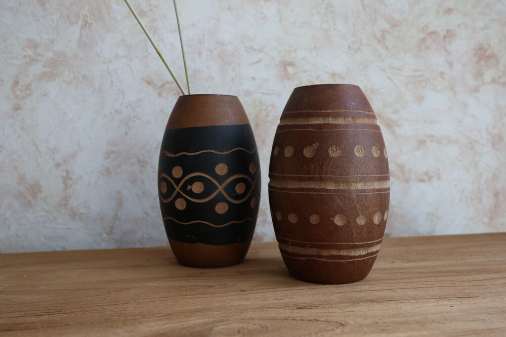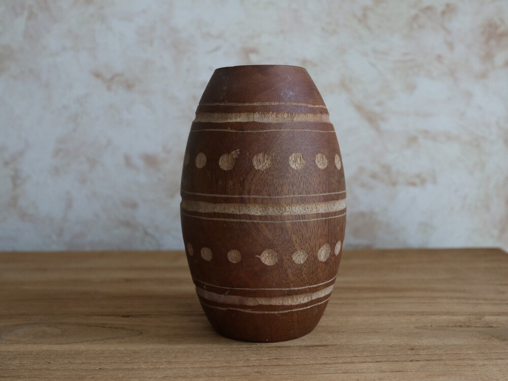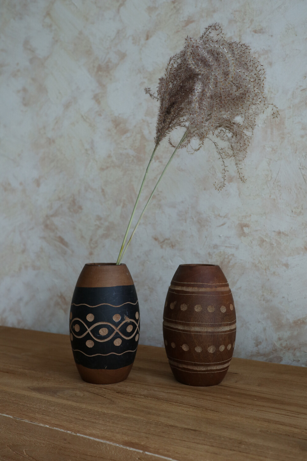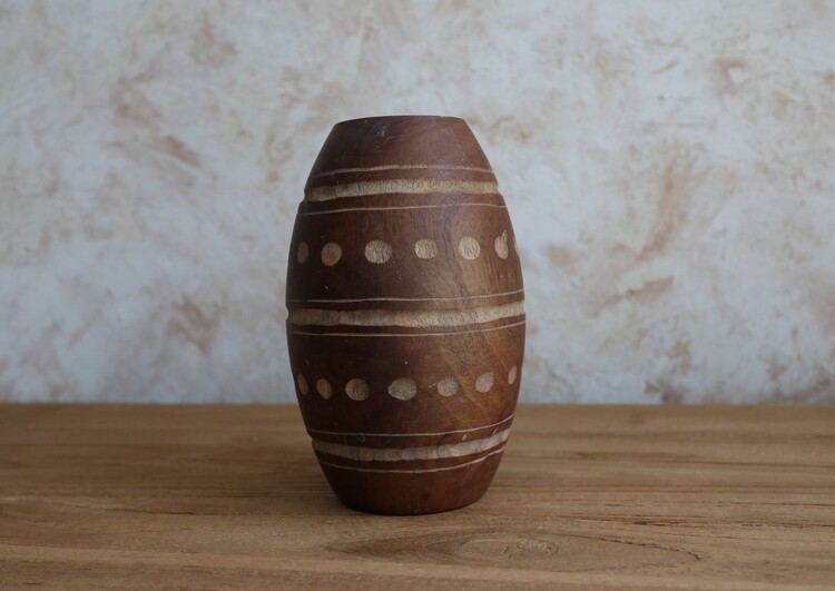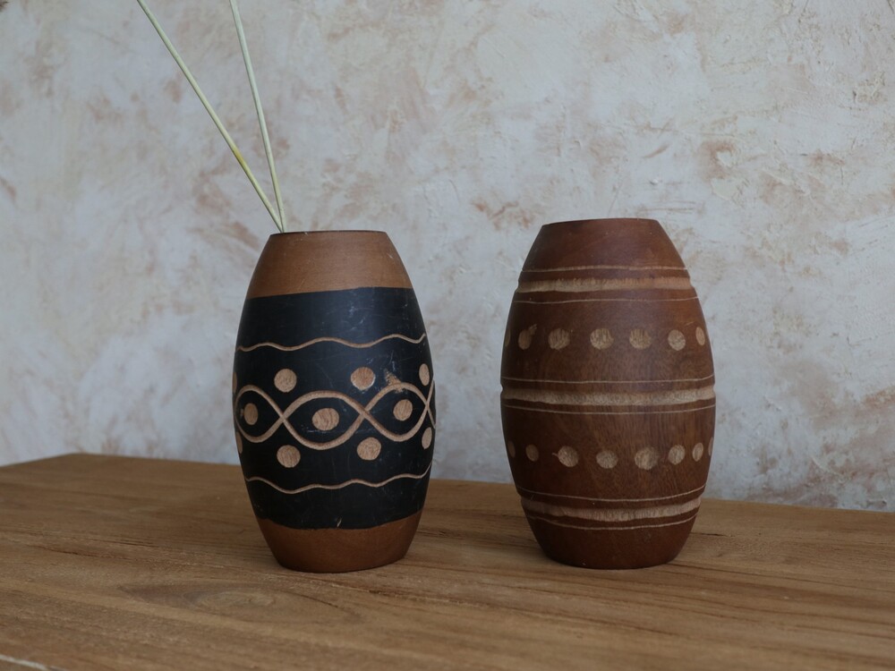 망고나무에 유니크한 패턴이 조각된 조화 전용 화병입니다.