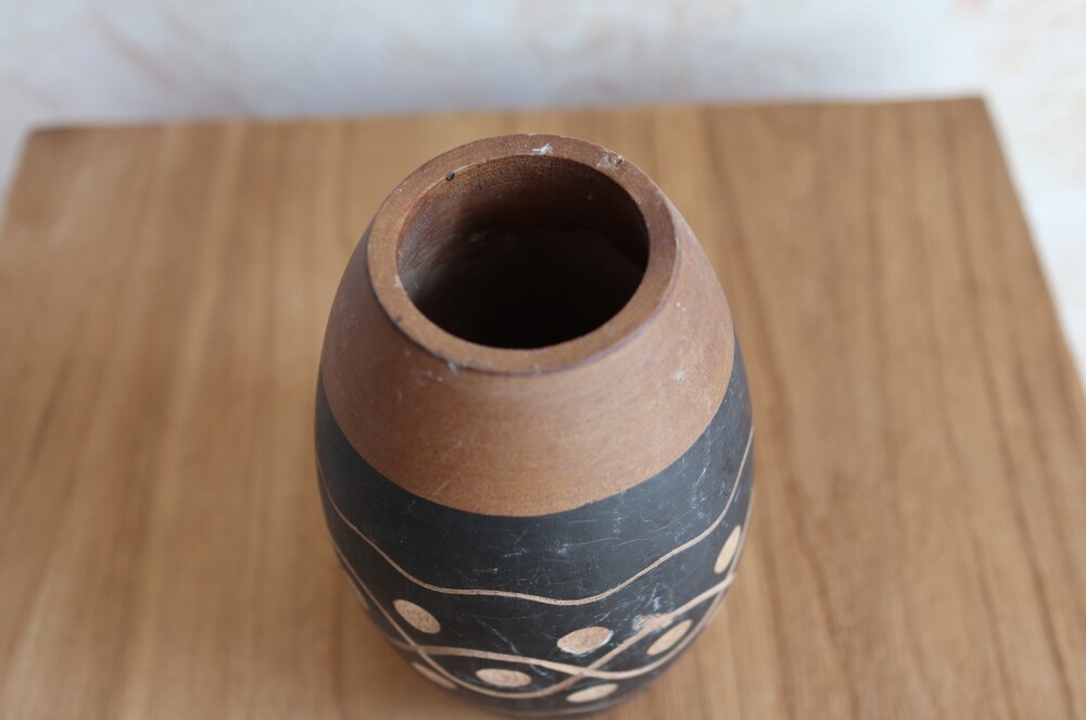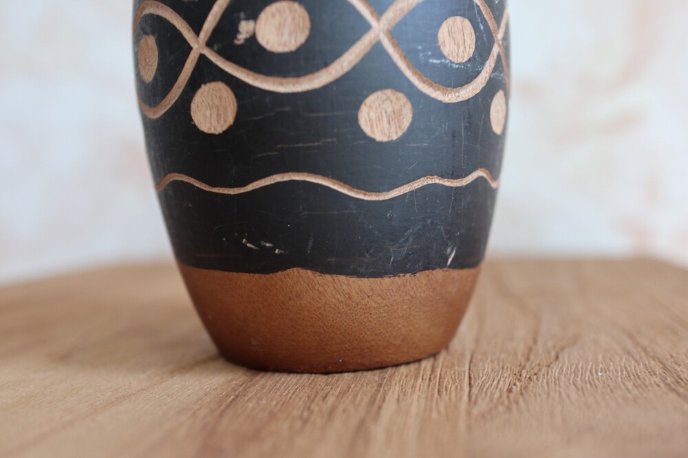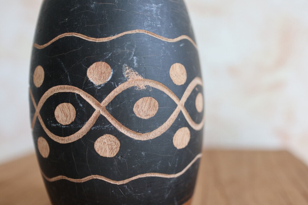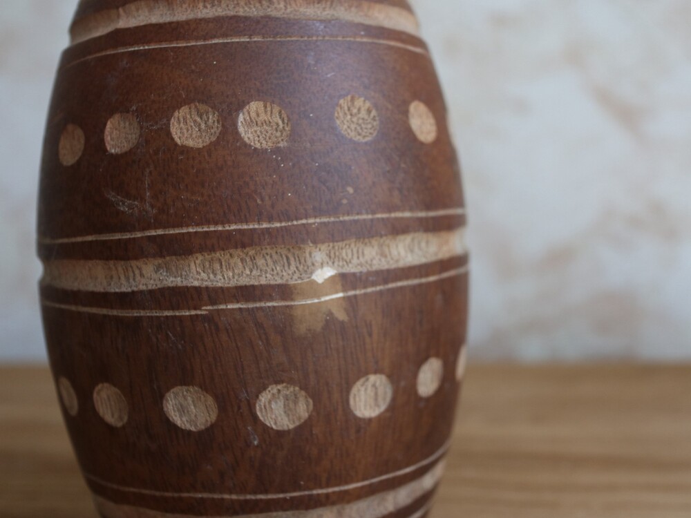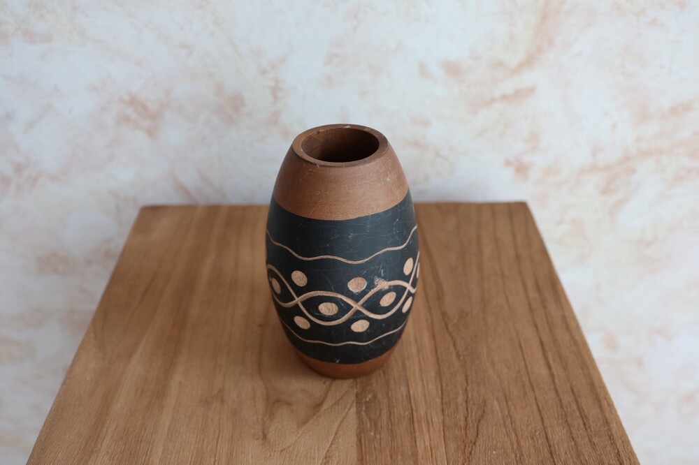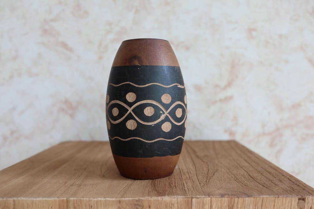 망고나무에 유니크한 패턴이 조각된 조화 전용 화병입니다.